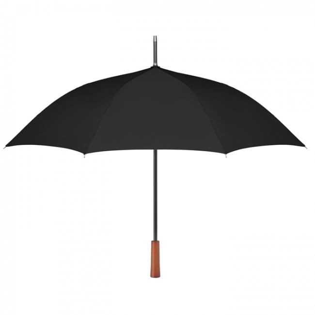 Umbrelă cu deschidere automată, de 23 inchi, din țesătură de 190T RPET pongee și nervură metalică, placată în negru. Mâner drept din lemn. Închidere manuală.Nume produs : GALWAY