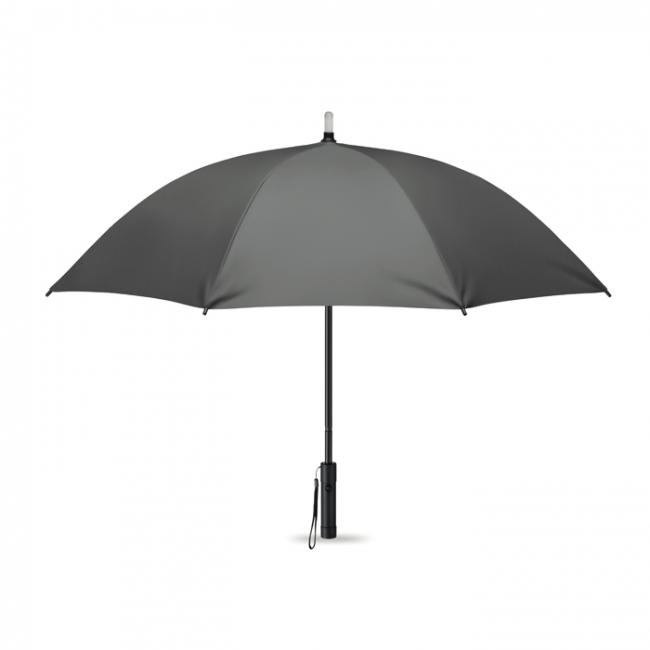 Umbrelă de 23 inchi, cu deschidere manuală, din poliester fin 190T, cu ax din aluminiu, spițe din fibră de sticlă și terminații negre. Închidere manuală. Prevăzută cu un LED de lumină în vârf cu 2 moduri de iluminare și lanternă în capatul mânerului. Funcționează cu 3 baterii tip AAA, neincluse.