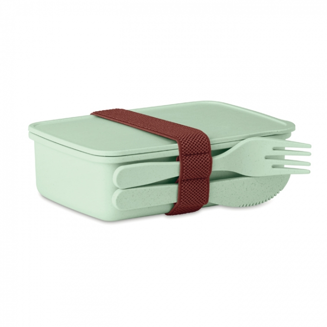 Caserolă pentru prânz, cu 1 compartiment, 1 furculiță și 1 cuțit din 50% fibre de bambus și 50% PP. Include bandă elastică pentru veselă.Nume produs : ASTORIABOX