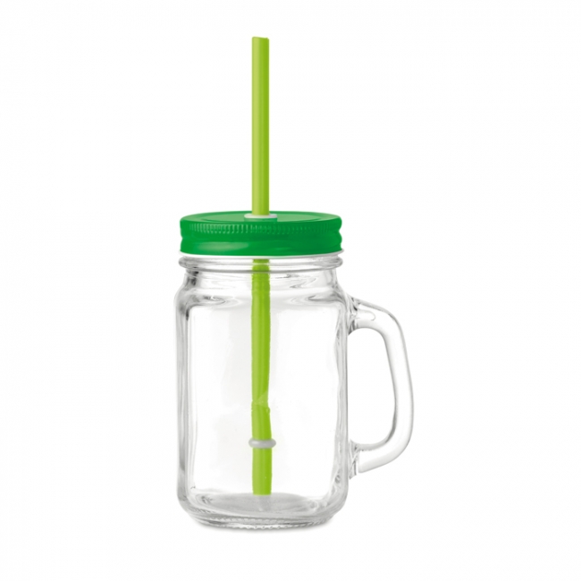 Pahar din sticlă de 450 ml cu mâner și capac din staniu. Include un pai PP.Nume produs : TROPICAL TWIST