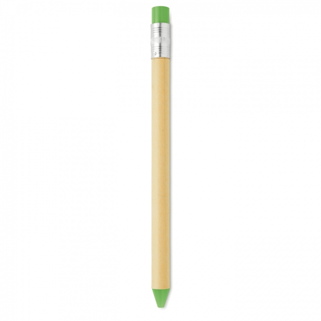 Pix cu buton in formă de creion, cu corp din carton. Mină albastră.