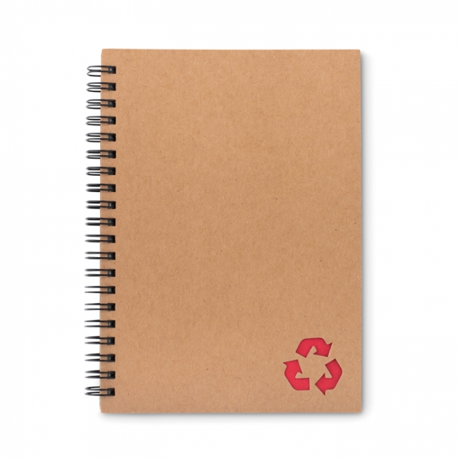 Bloc notes cu spirală, cu 70 de coli de hârtie din piatră și copertă din carton reciclat. Hârtia din piatră este realizată din piatră naturală - carbonat de calciu, calcar și plastic din HDPE.