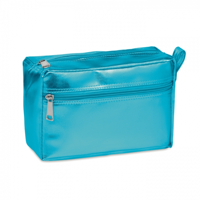 Geantă pentru cosmetice, cu fermoar dublu, din PVC lucios.