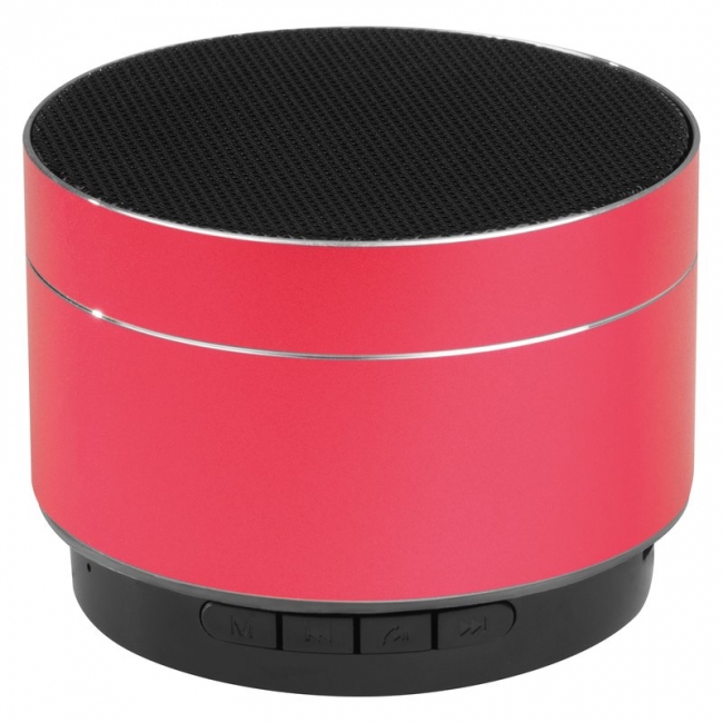 Difuzor Bluetooth din aluminiu rotund cu baterie încorporată, radio integrat, slot pentru o cartelă TF şi lumină LED intermitentă pe partea inferioară. Cablul de încărcare micro USB este inclus. Personalizarea vă recomandăm prin gravura laser.