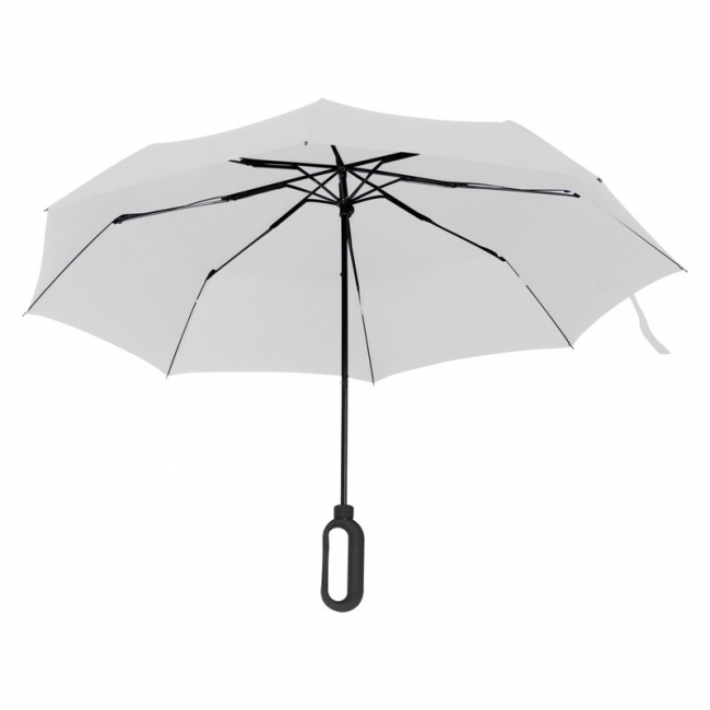 Automatic pocket umbrella made of 190T pongee with special handle in carabiner shape. Your advertisement will be printed on a segment.Brand :