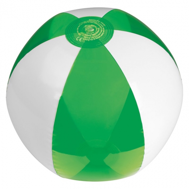 Phtalate-free bicolor beach ball made of PVC with white and colored-transparent segments. Your advertising will be printed on a white segment.Brand :