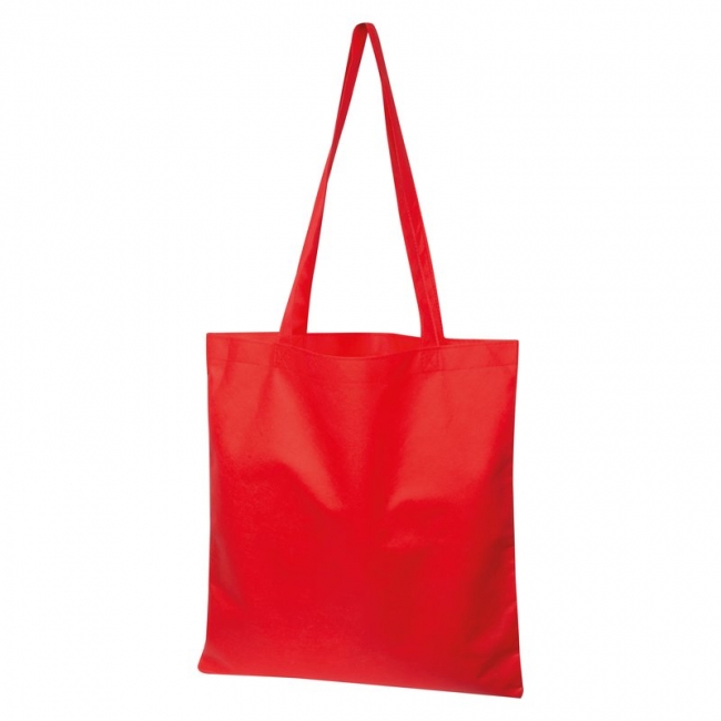 Large non-woven shopping bag with long straps and cross seam. Your advertising will be printed on one side.