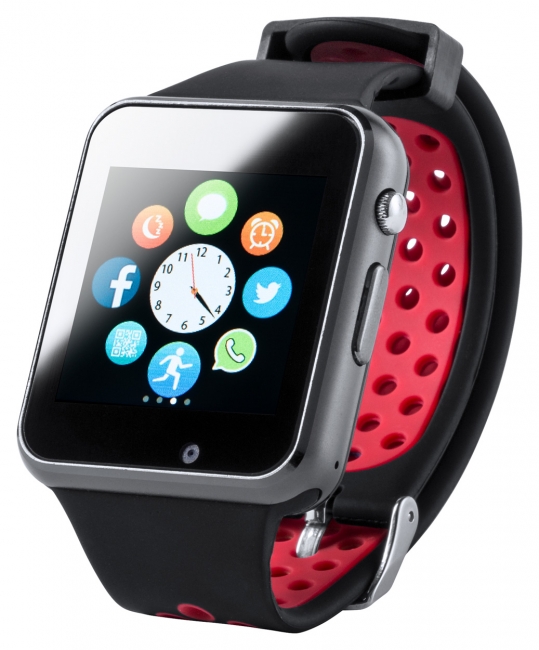 Multilingual, bluetooth smart watch with 1,54" LCD screen, silicon strap and built-in camera. Including USB charger cable.