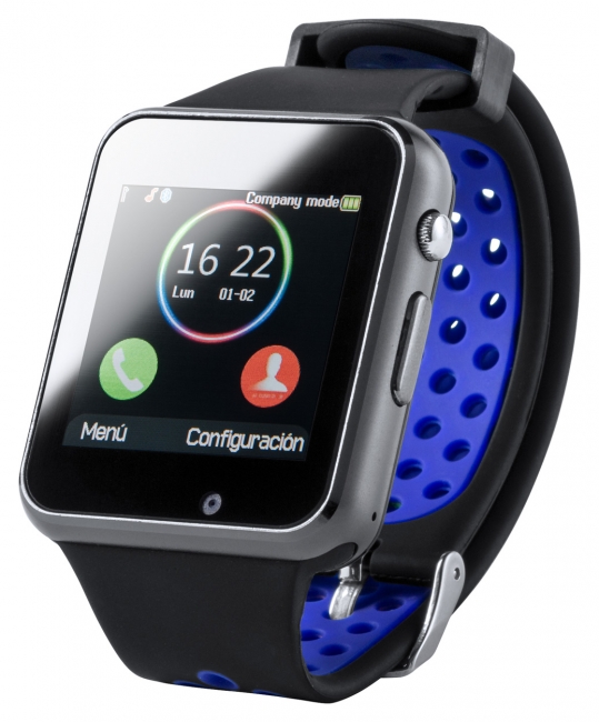 Multilingual, bluetooth smart watch with 1,54" LCD screen, silicon strap and built-in camera. Including USB charger cable.