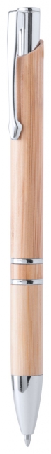 Bamboo ballpoint pen with chrome clip and tip. With black refill.