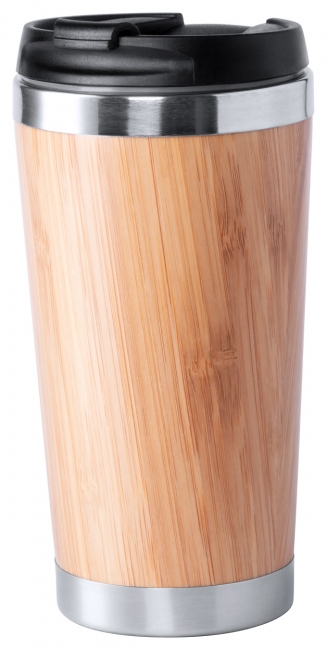 Bamboo covered, single wall stainless steel thermo mug with drinking lid, 450 ml. In gift box.Design : Ariston