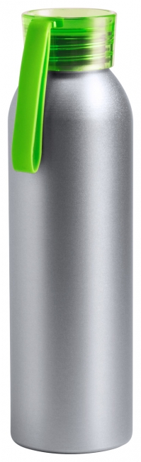 Aluminium sport bottle with coloured cap and silicone carry strap, 650 ml.