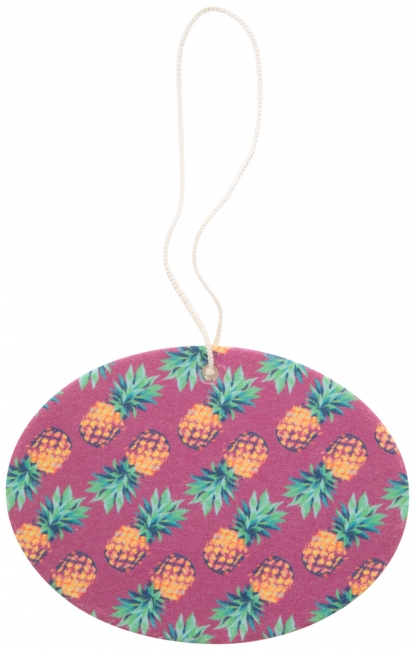 Car air freshener with custom fragrance (vanilla, exotic, ocean, menthol, coconut, lemon, melone, peach, strawberry, fresh). With full colour printing on both sides. MOQ: 250 pcs.