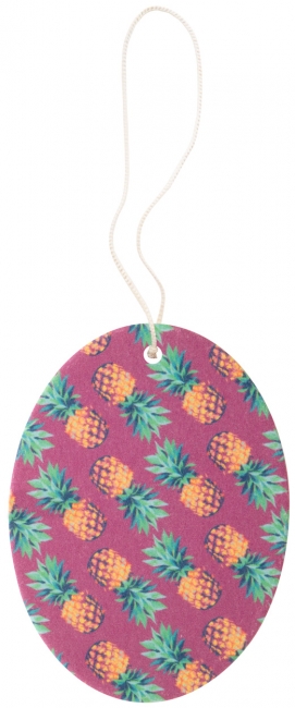 Car air freshener with custom fragrance (vanilla, exotic, ocean, menthol, coconut, lemon, melone, peach, strawberry, fresh). With full colour printing on both sides. MOQ: 250 pcs.