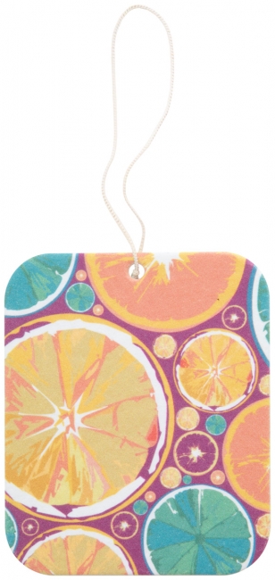 Car air freshener with custom fragrance (vanilla, exotic, ocean, menthol, coconut, lemon, melone, peach, strawberry, fresh). With full colour printing on both sides. MOQ: 250 pcs.